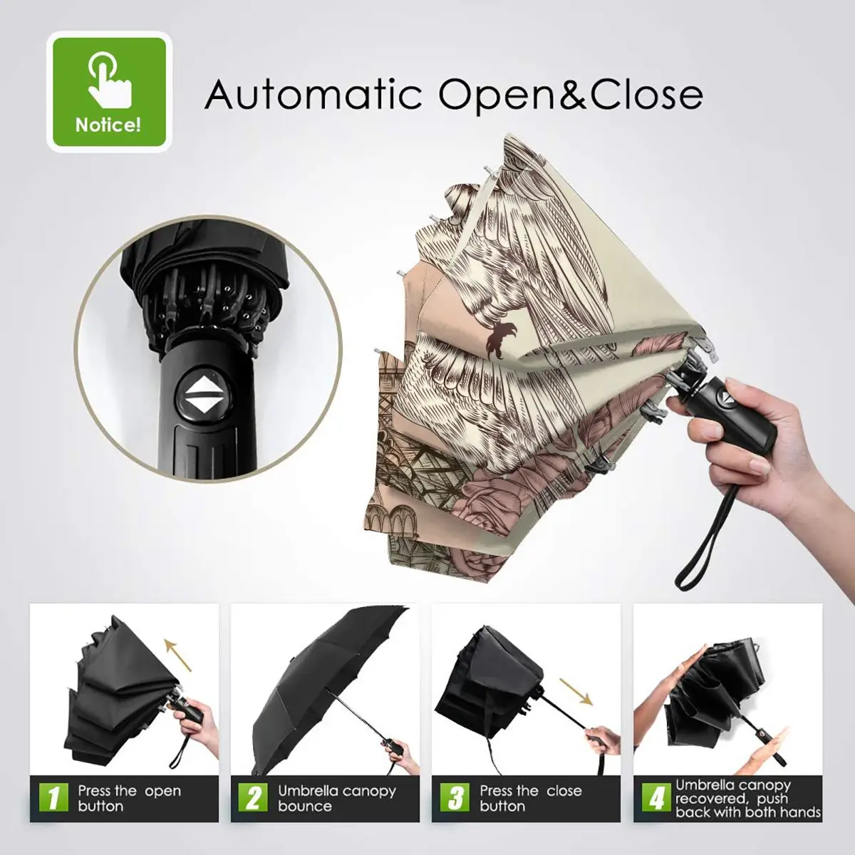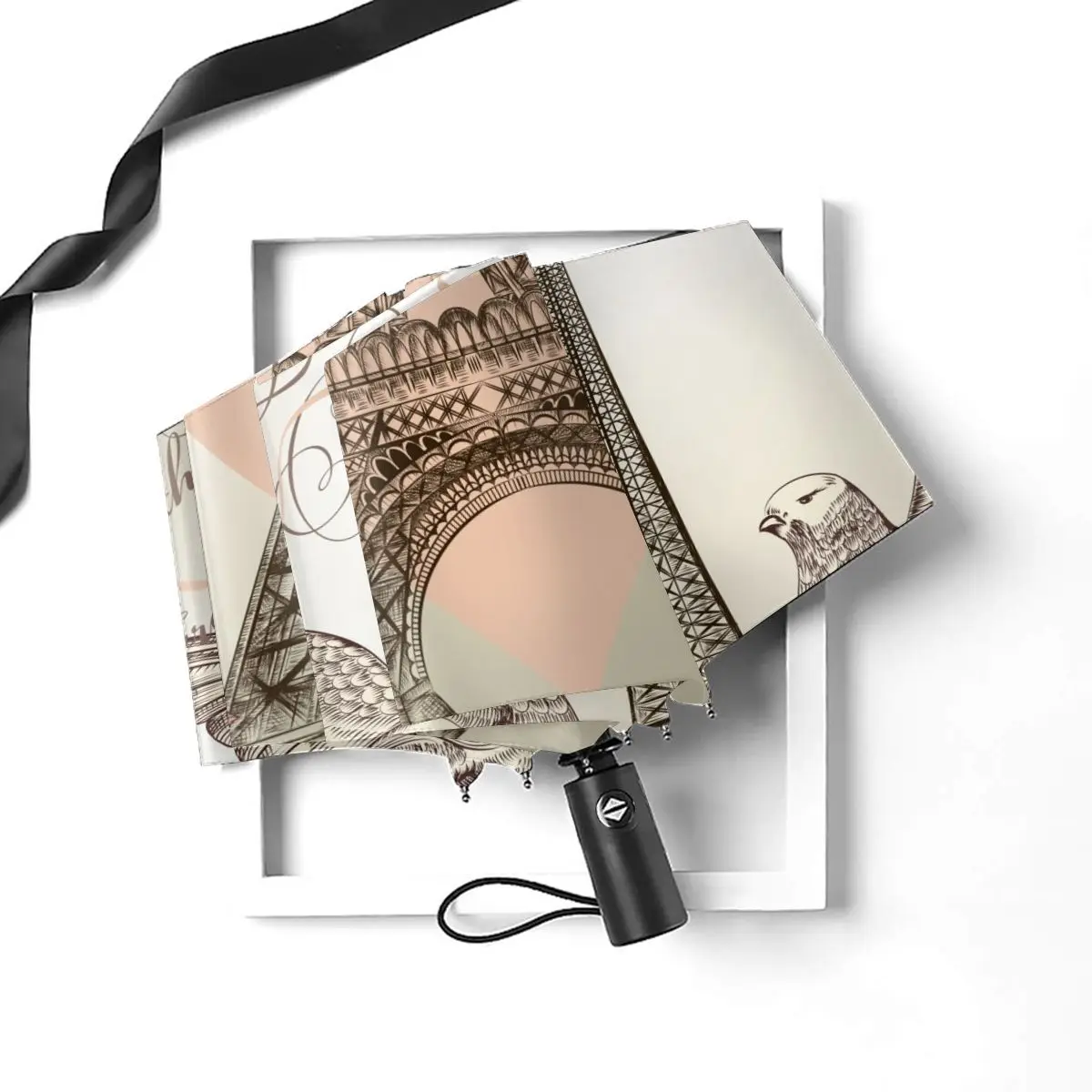 Product Name: Carta Automatica Pieghevole Resistente Al Vento Delle Donne Con L'ombrello Antivento Della Torre Eiffel Di Vettore Dettagliato Pioggia Per Gli Uomini Parasole