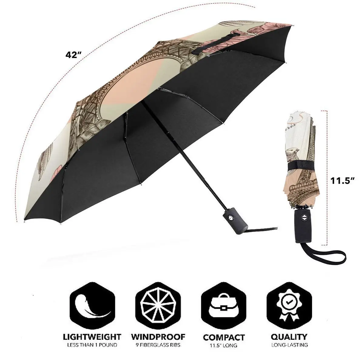 Special Offer Carta Automatica Pieghevole Resistente Al Vento Delle Donne Con L'ombrello Antivento Della Torre Eiffel Di Vettore Dettagliato Pioggia Per Gli Uomini Parasole Discount [NEW!!] Today!