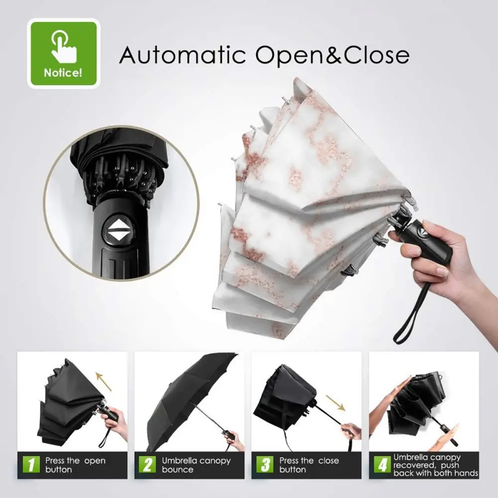 Product Name: Ombrello Automatico Da Pioggia Ombrello A Tre Pieghe Ombrello Antivento In Marmo Oro Rosa Ombrello Impermeabile Femminile