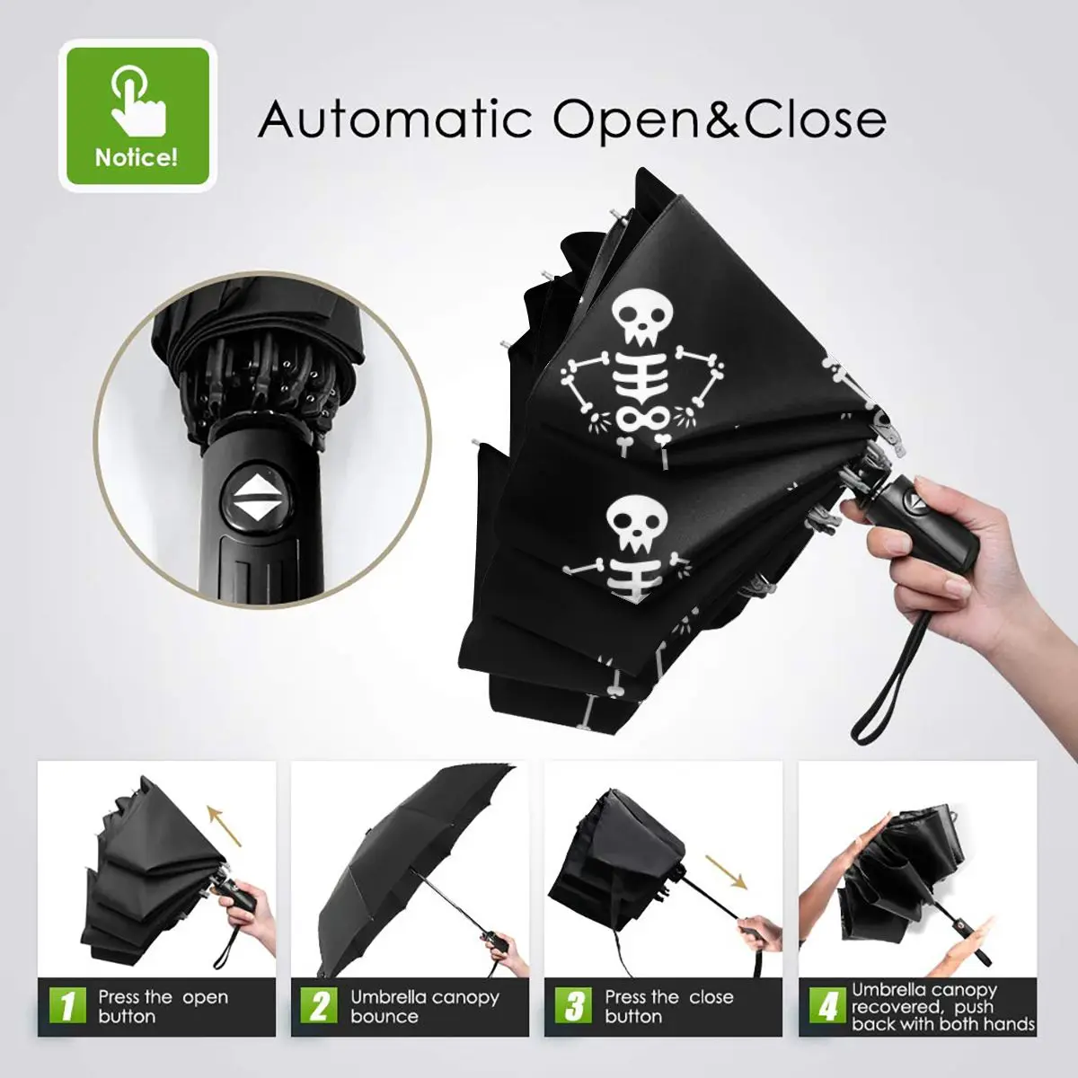 Special Offer Ombrello Automatico Pieghevole Resistente Al Vento Donna Auto Divertente Halloween Scheletro Danzante Ombrelli Antivento Pioggia Per Uomo Ombrellone Discount [NEW!!] Today!