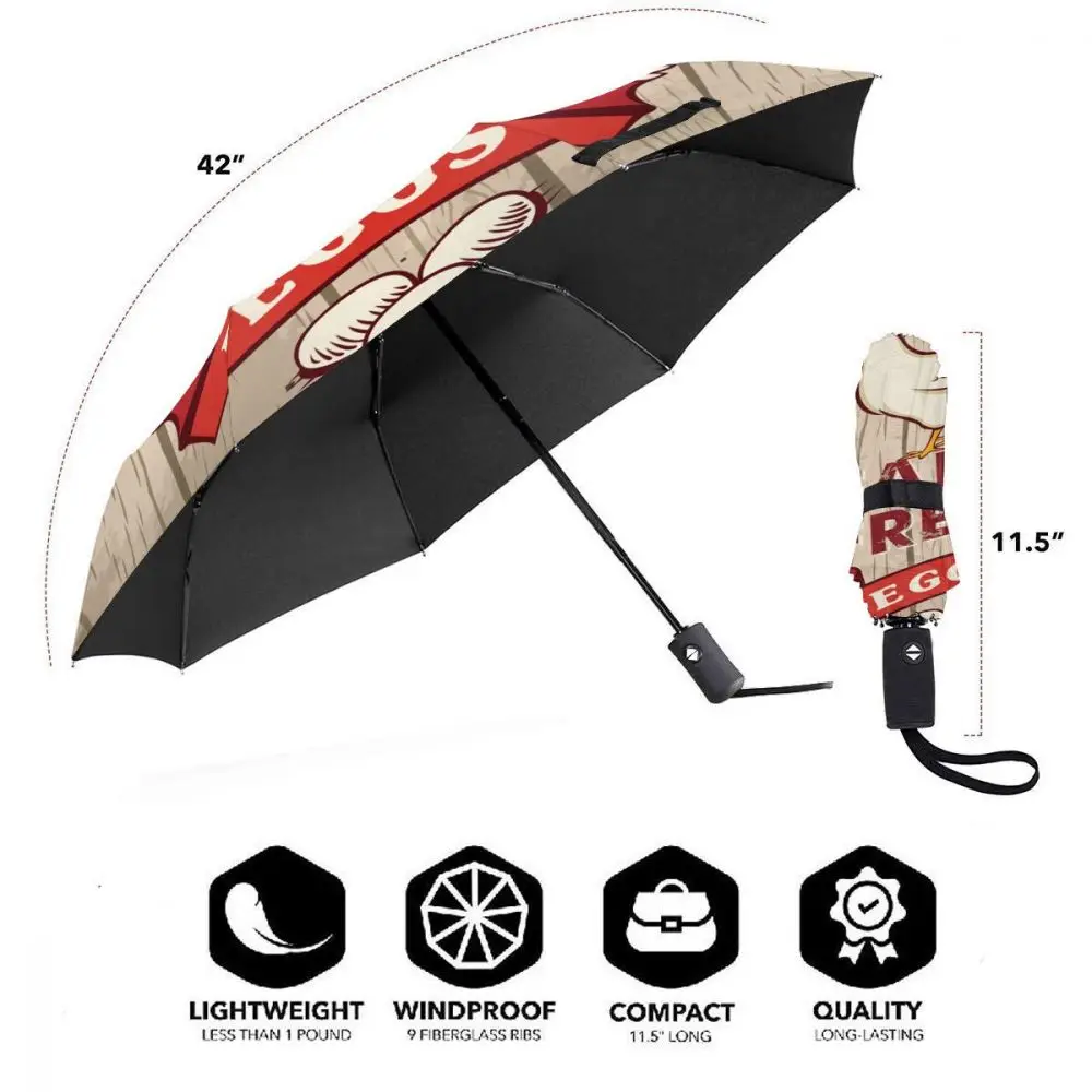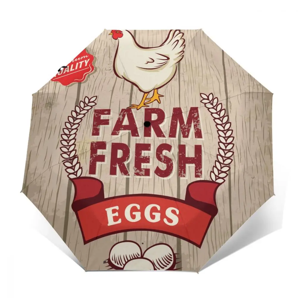 Special Offer Ombrello Soleggiato Retrò Gallo Di Uova Fresche Su Ombrello Da Uomo Portatile Pieghevole Automatico In Legno Protezione Solare Pioggia Ombrellone Antivento Da Spiaggia Discount [NEW!!] Today!