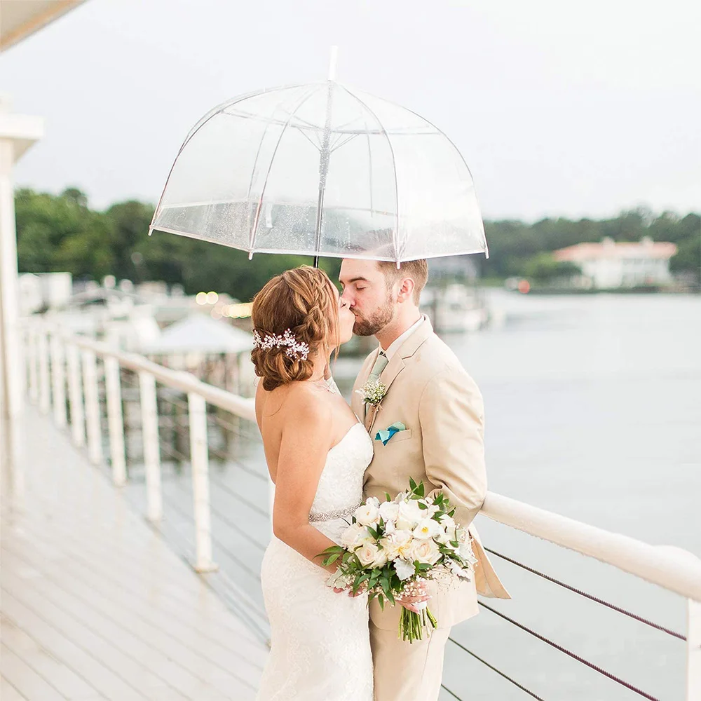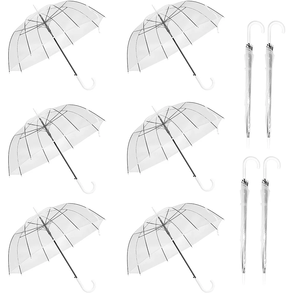 Special Offer 10Pcs Ombrelli A Bolle Trasparenti Ombrello A Baldacchino Grande Auto Aperto Antivento Con Manico A Gancio Europeo Bianco J Stili Di Matrimonio All'aperto Discount [NEW!!] Today!
