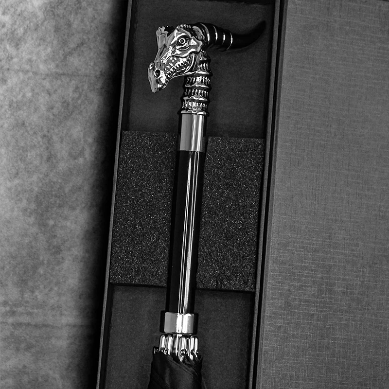 Product Name: Adulti Nero Ombrello Creativo Retrò Testa Di Animale Automatico Manico Lungo Ombrello Antivento Mestiere Porte Parapluie Accessori E Articoli Per Pioggia EB50YS