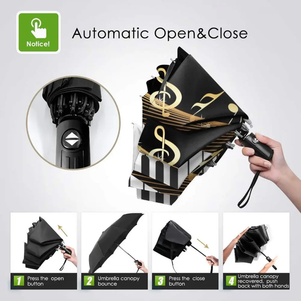 Product Name: Note Musicali Per Pianoforte Ombrello Rovesciato Pieghevole Automatico Antivento Paraguas Portatili Per Uomo Donna