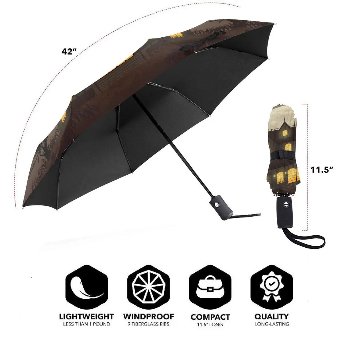 Special Offer Ombrello Automatico Pioggia Donna Ombrello A Tre Pieghe Halloween Casa Stregata Ombrello Antivento Ombrello Impermeabile Femminile Discount [NEW!!] Today!