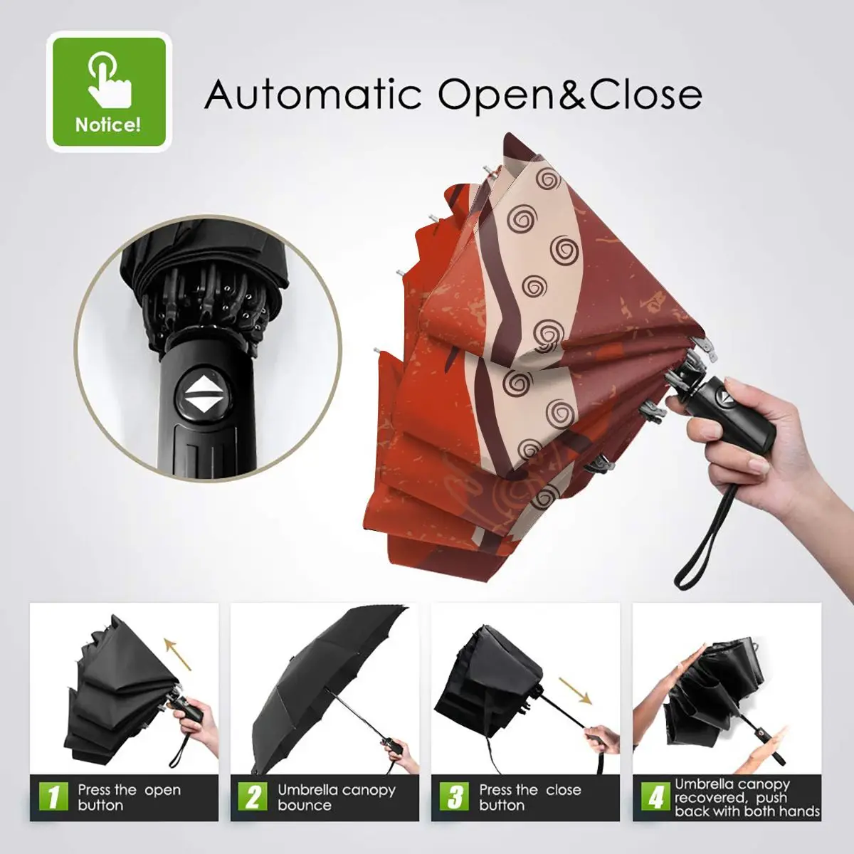 Product Name: Ombrello Soleggiato Arte Africana Sfondo Pieghevole Automatico Portatile Uomo Donna Ombrello Protezione Solare Pioggia Antivento Ombrellone Da Spiaggia