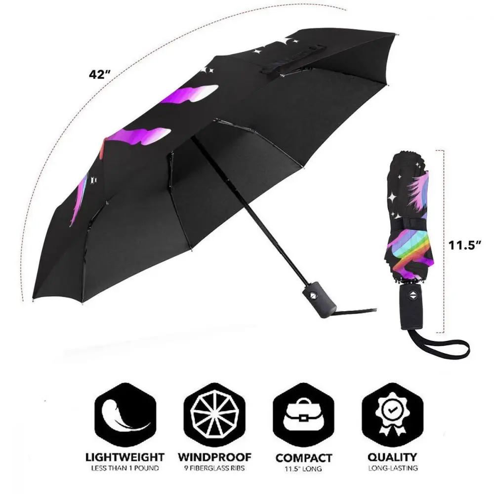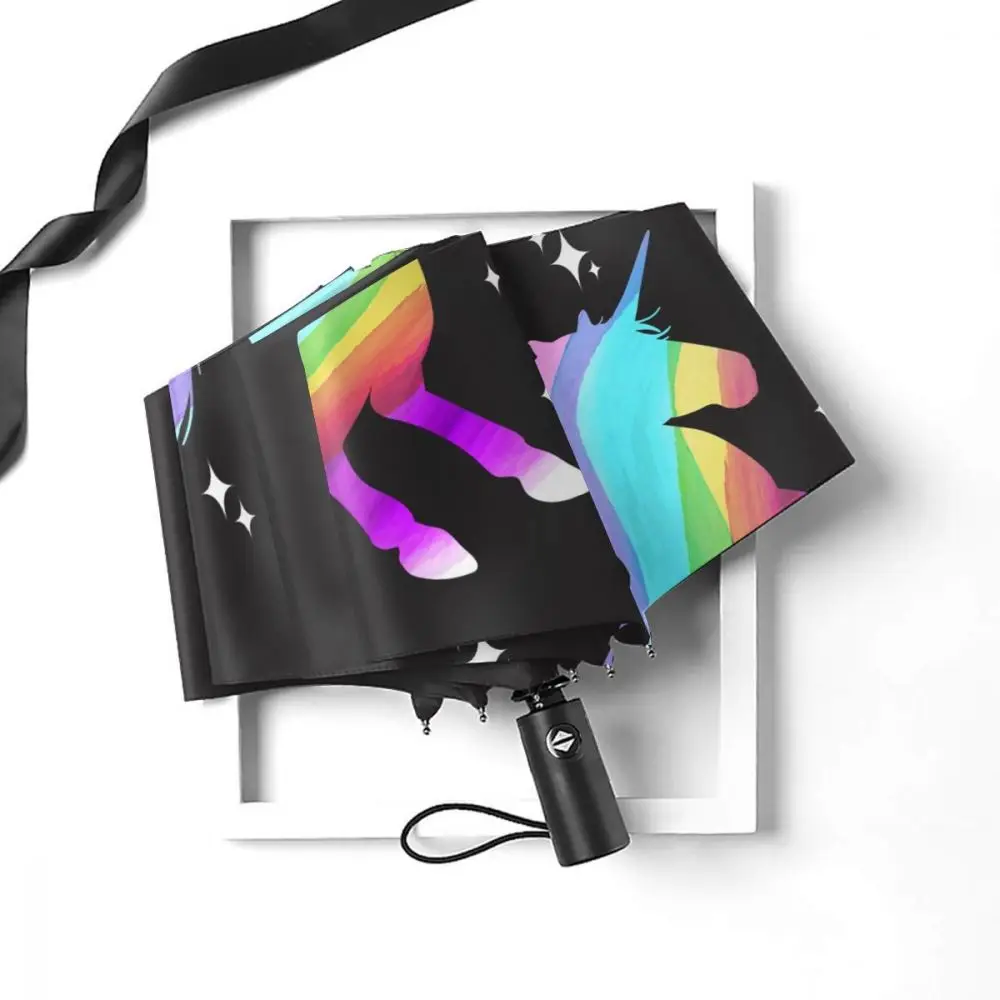 Product Name: Ombrello Soleggiato Arcobaleno Unicorno Pieghevole Automatico Portatile Uomo Donna Ombrello Protezione Solare Pioggia Antivento Ombrellone Da Spiaggia