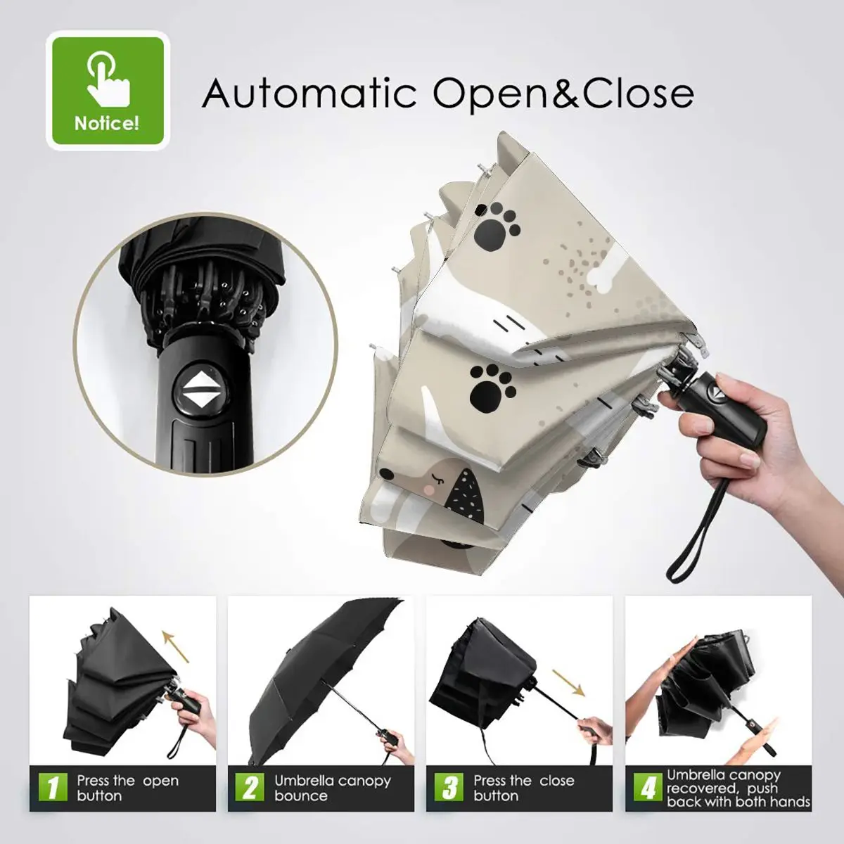 Product Name: Simpatici Cani Bassotto Antivento Pieghevole Automatico Ombrello Invertito Paraguas Portatili Per Uomo Donna