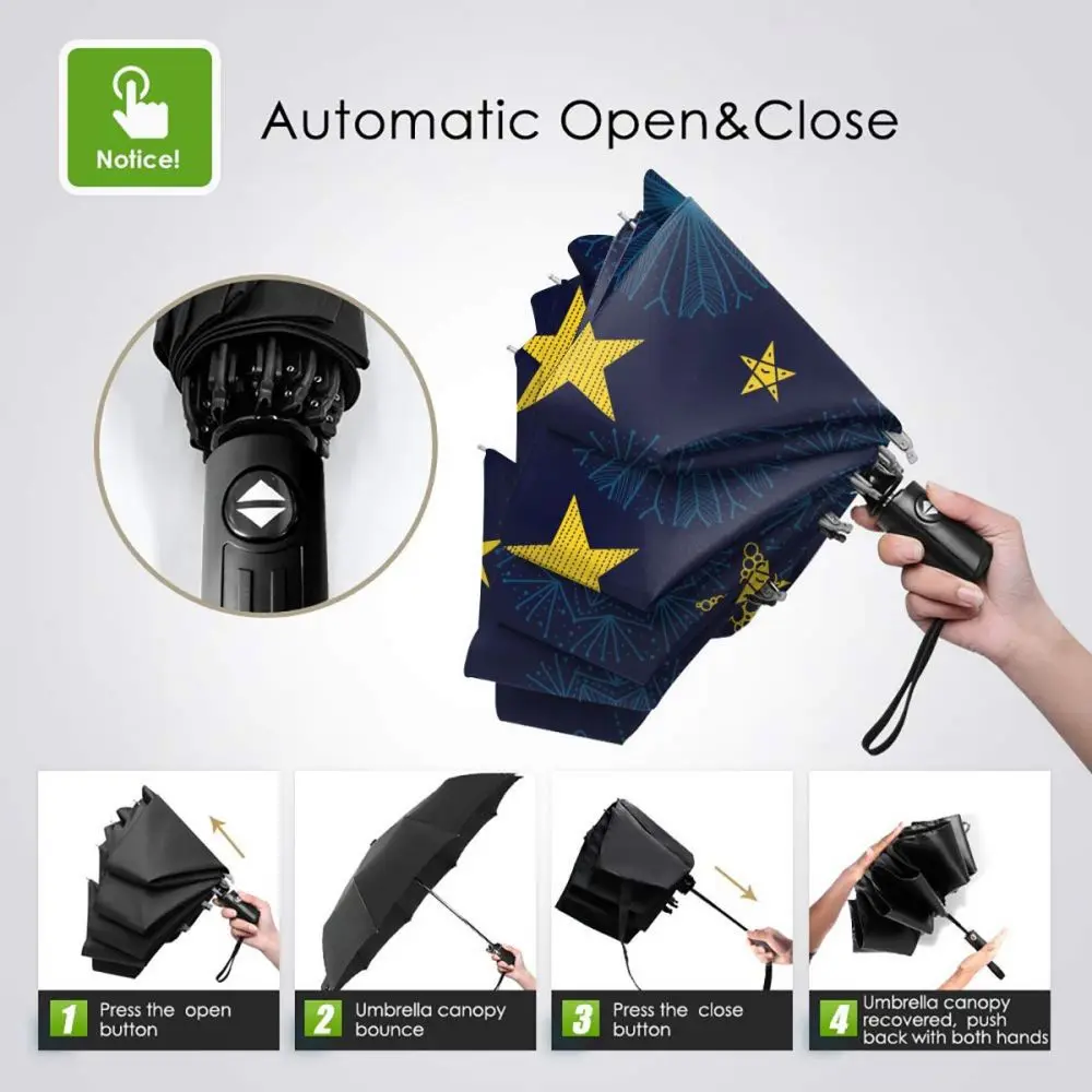 Special Offer Carino Inverno Fiocchi Di Neve E Le Stelle Antivento Automatico Pieghevole Invertito Ombrello Portatile Paraguas Per Uomo Donna Discount [NEW!!] Today!