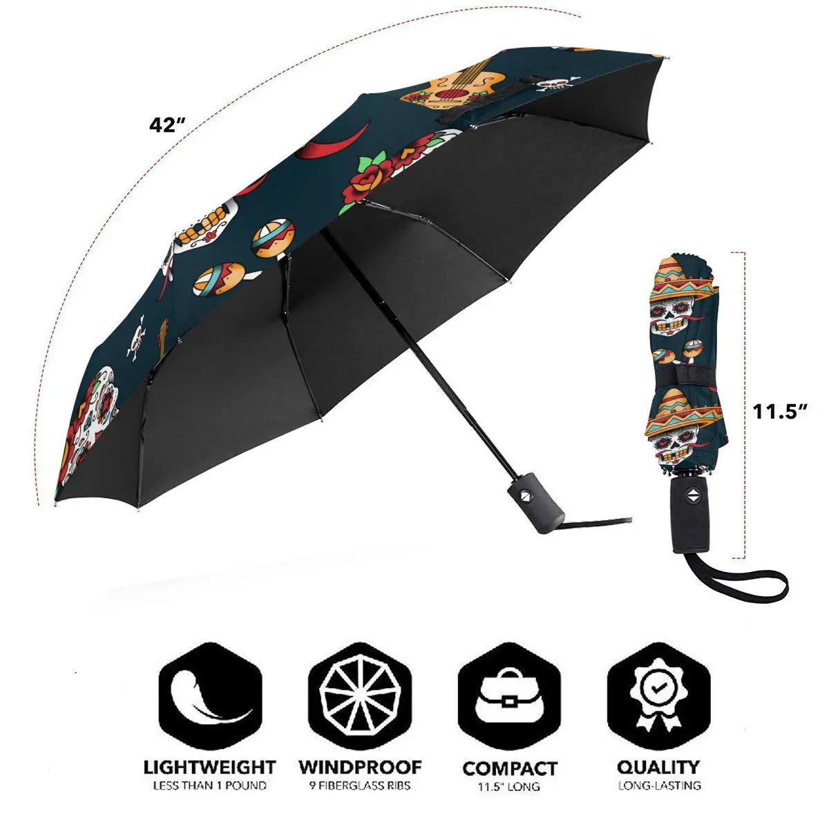 Special Offer Ombrello Automatico Pioggia Donna Ombrello A Tre Pieghe Modello Teschio Messicano Ombrello Antivento Ombrello Impermeabile Femminile Discount [NEW!!] Today!