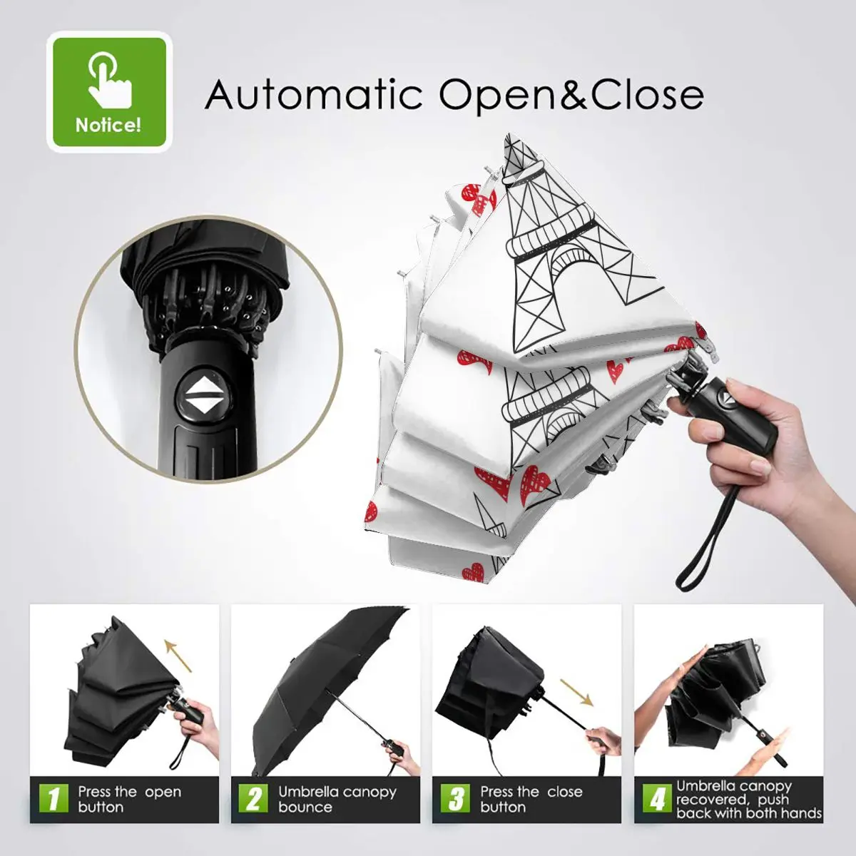 Special Offer Ombrello Automatico Pioggia Donna Ombrello A Tre Pieghe Torre Eiffel Ombrello Antivento Viola Ombrello Impermeabile Femminile Discount [NEW!!] Today!