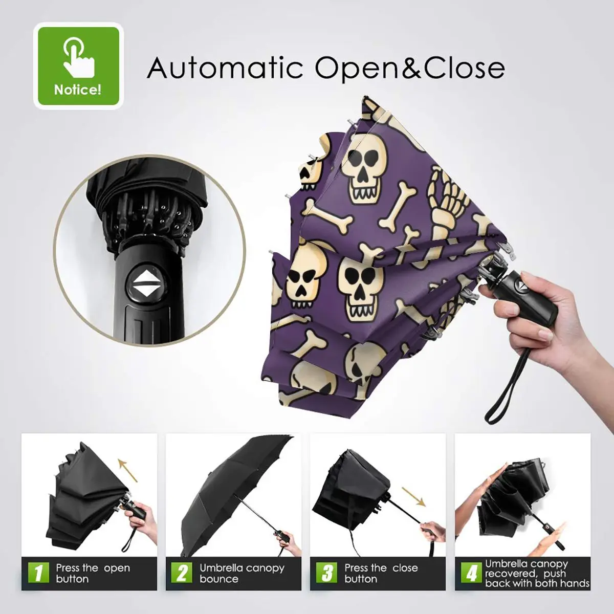 Product Name: Ombrello Automatico Pieghevole Resistente Al Vento Donna Auto Disegnato A Mano Teschio E Scheletro Ombrelli Antivento Pioggia Per Uomo Ombrellone