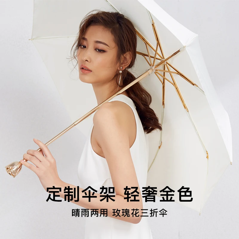 Product Name: Bianco Rosa Ombrello Pioggia Fiore Di Cerimonia Nuziale Antivento Portatile Femminile Accessori E Articoli Per Pioggia Di Lusso A Tre Fold Parachase Articoli Per La Casa AE50YS