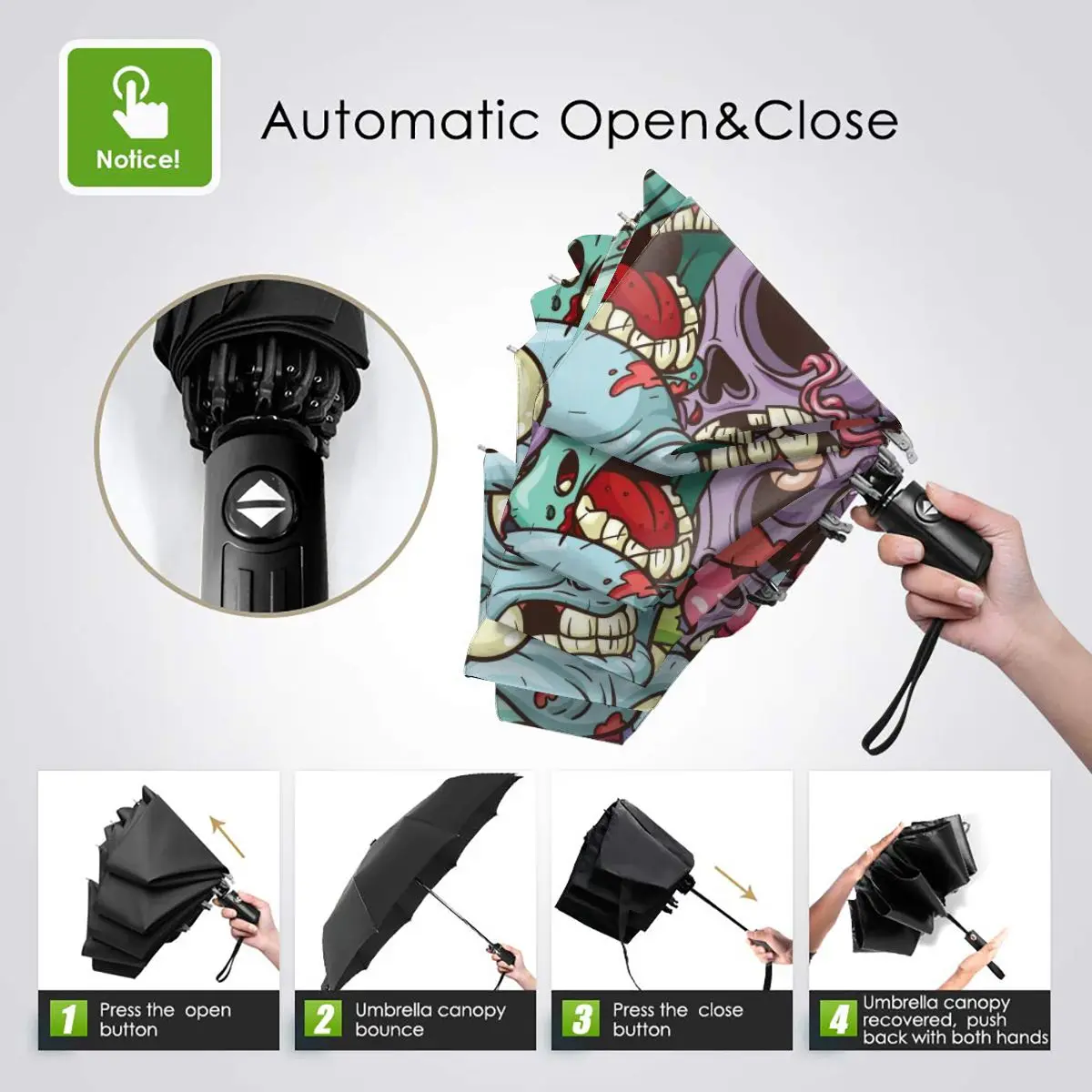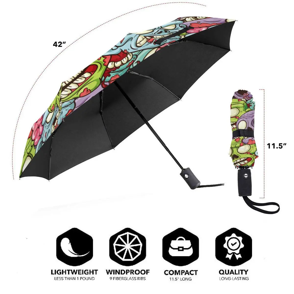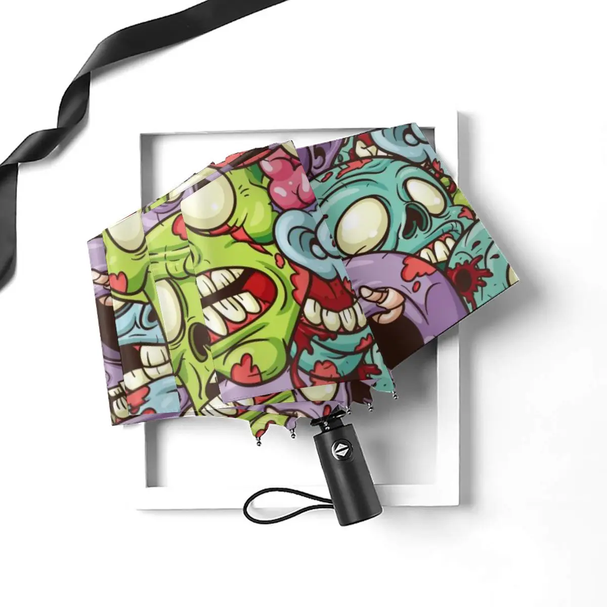 Special Offer Automatico Ombrello Da Pioggia Donne Tre-pieghevole Ombrello Del Fumetto Zombie Teste Antivento Ombrello Femminile Impermeabile Parasole Discount [NEW!!] Today!