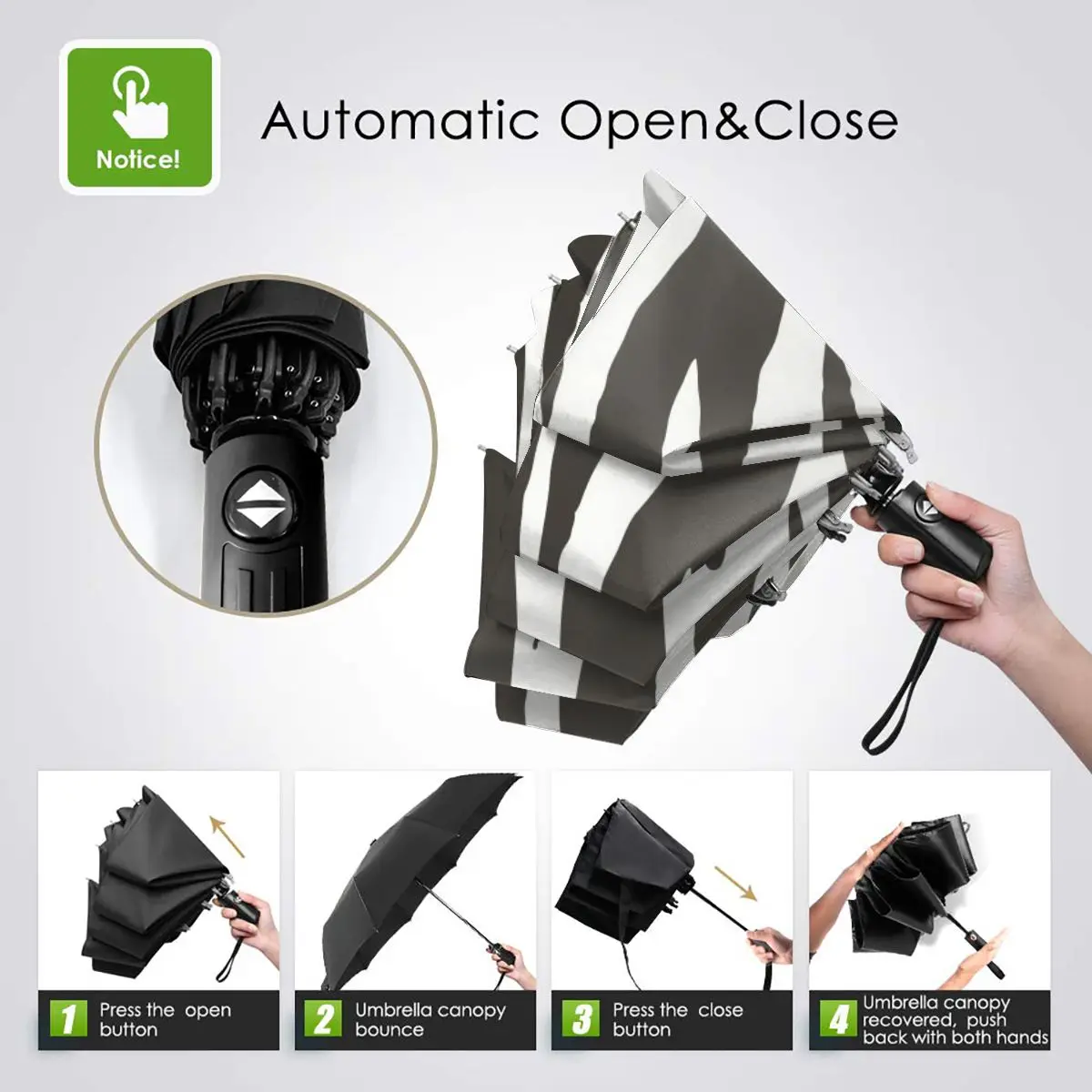 Product Name: Del Fumetto Zebra Antivento Automatico Pieghevole Invertito Ombrello Portatile Paraguas Per Uomo Donna