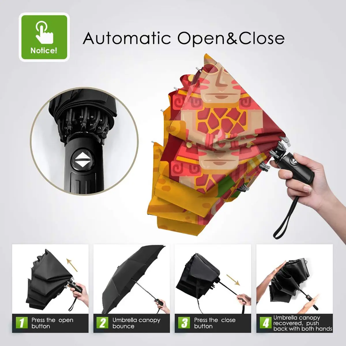Product Name: Maya Culture Poster Idoli Maya Ombrello Rovesciato Pieghevole Automatico Antivento Paraguas Portatile Per Uomo Donna