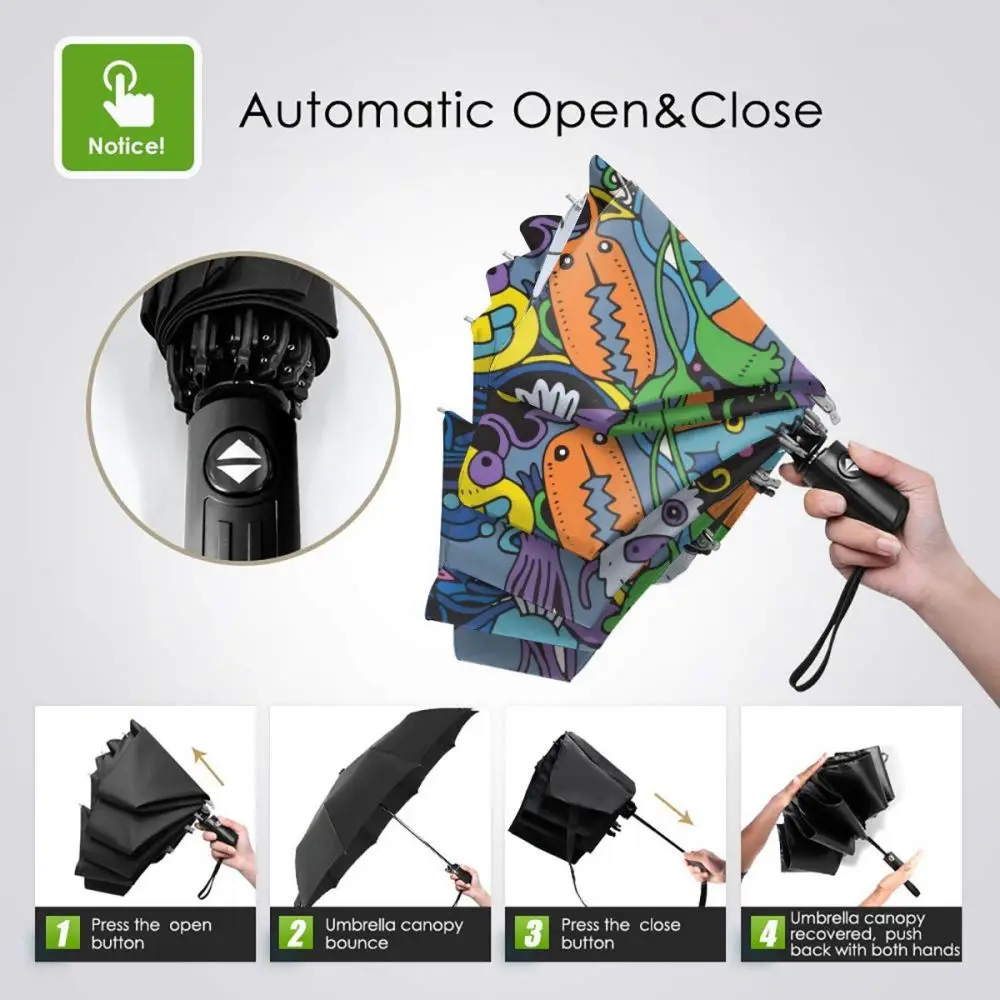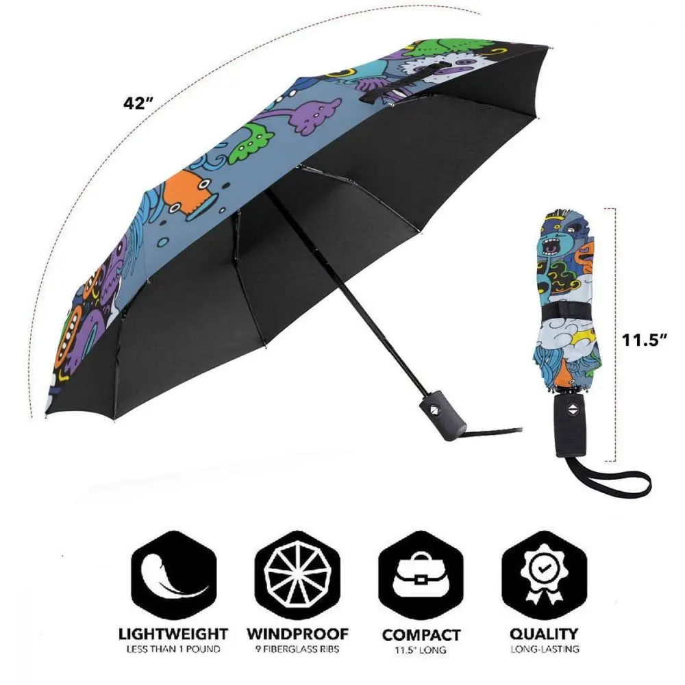 Product Name: Ombrello Soleggiato Hipster Crazy Monster City Pieghevole Automatico Portatile Uomo Donna Ombrello Protezione Solare Pioggia Antivento Ombrellone Da Spiaggia