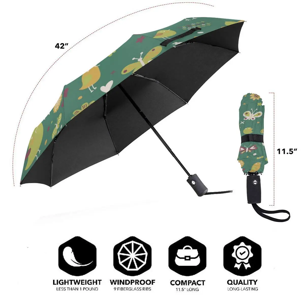 Special Offer Carino Uccelli Del Fumetto Butterfiles Antivento Automatico Pieghevole Invertito Ombrello Portatile Paraguas Per Uomo Donna Discount [NEW!!] Today!