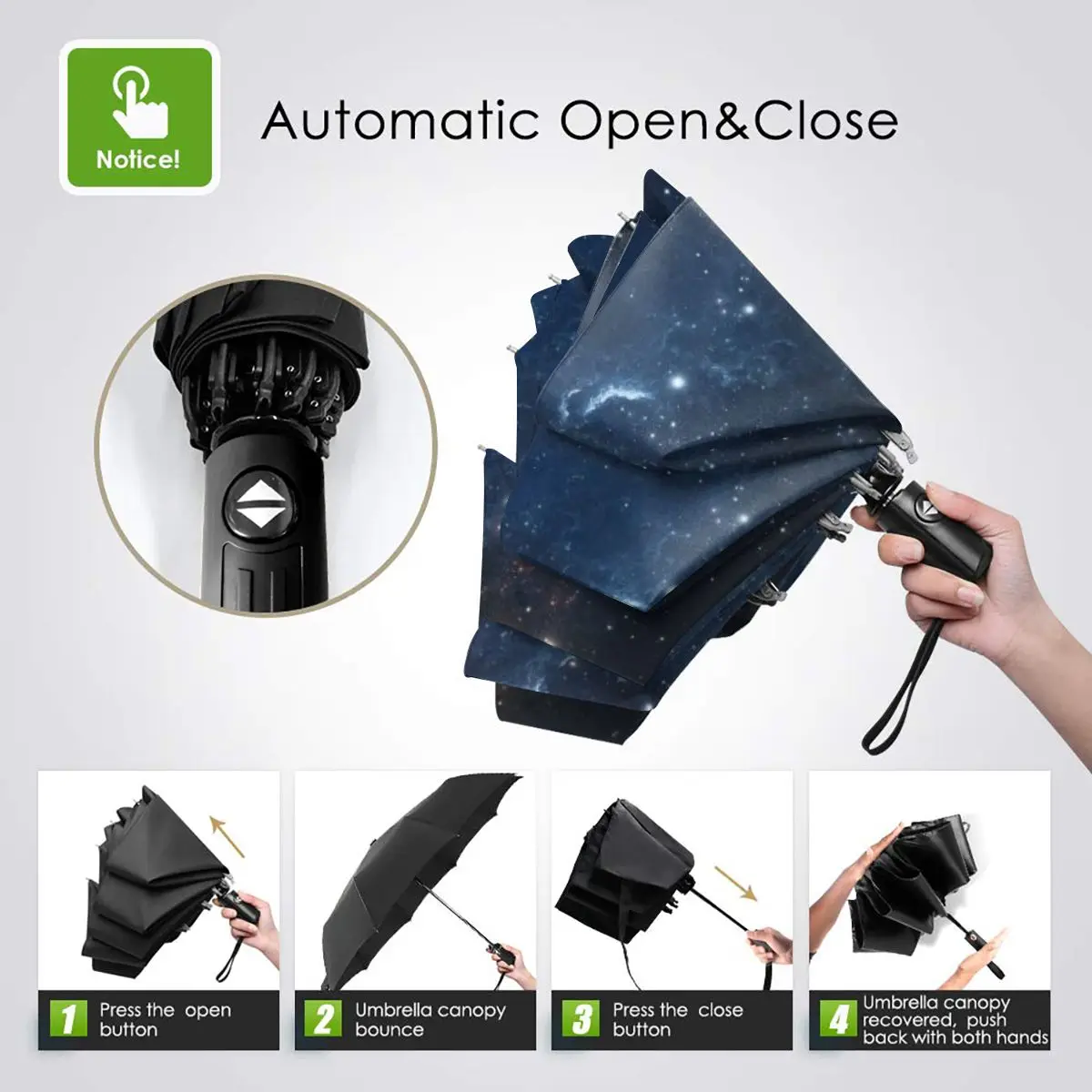 Product Name: Nebulosa Cielo Notturno Con Le Stelle Antivento Automatico Pieghevole Invertito Ombrello Portatile Paraguas Per Uomo Donna