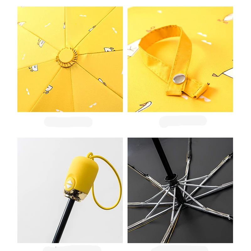 Product Name: Nuovo Cartone Animato Duck Design Ombrello Automatico Giallo Antivento UV Proteggere L'ombrello Per Le Donne Ragazza Ombrelli Pieghevoli Solosi E Bagnati
