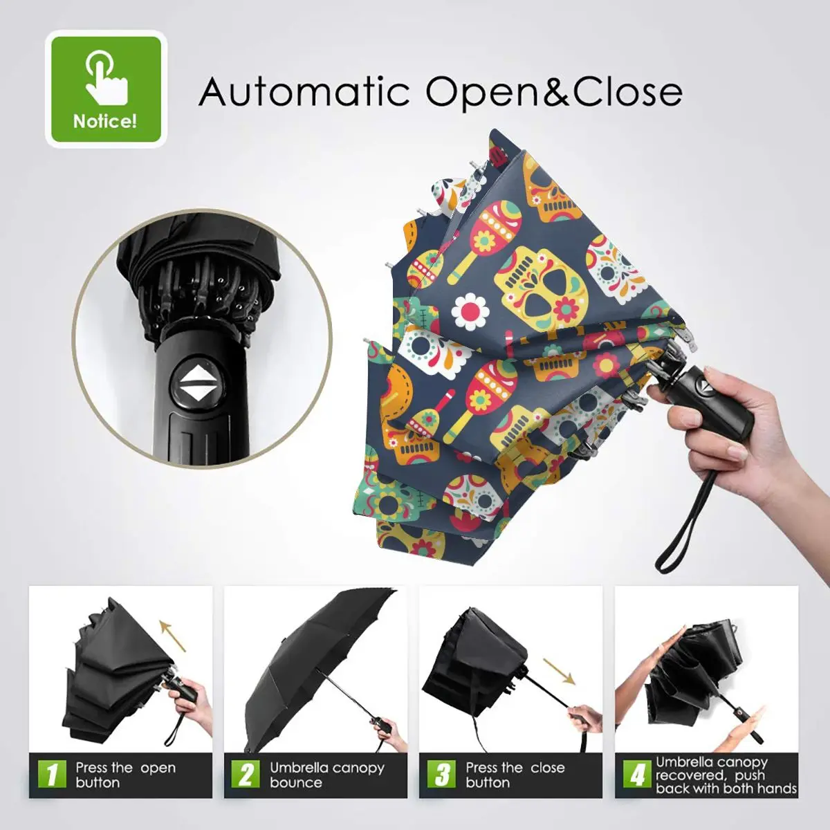 Product Name: Ombrello Pieghevole Pieghevole Automatico Antivento A Tema Day Dead Per Uomo Donna