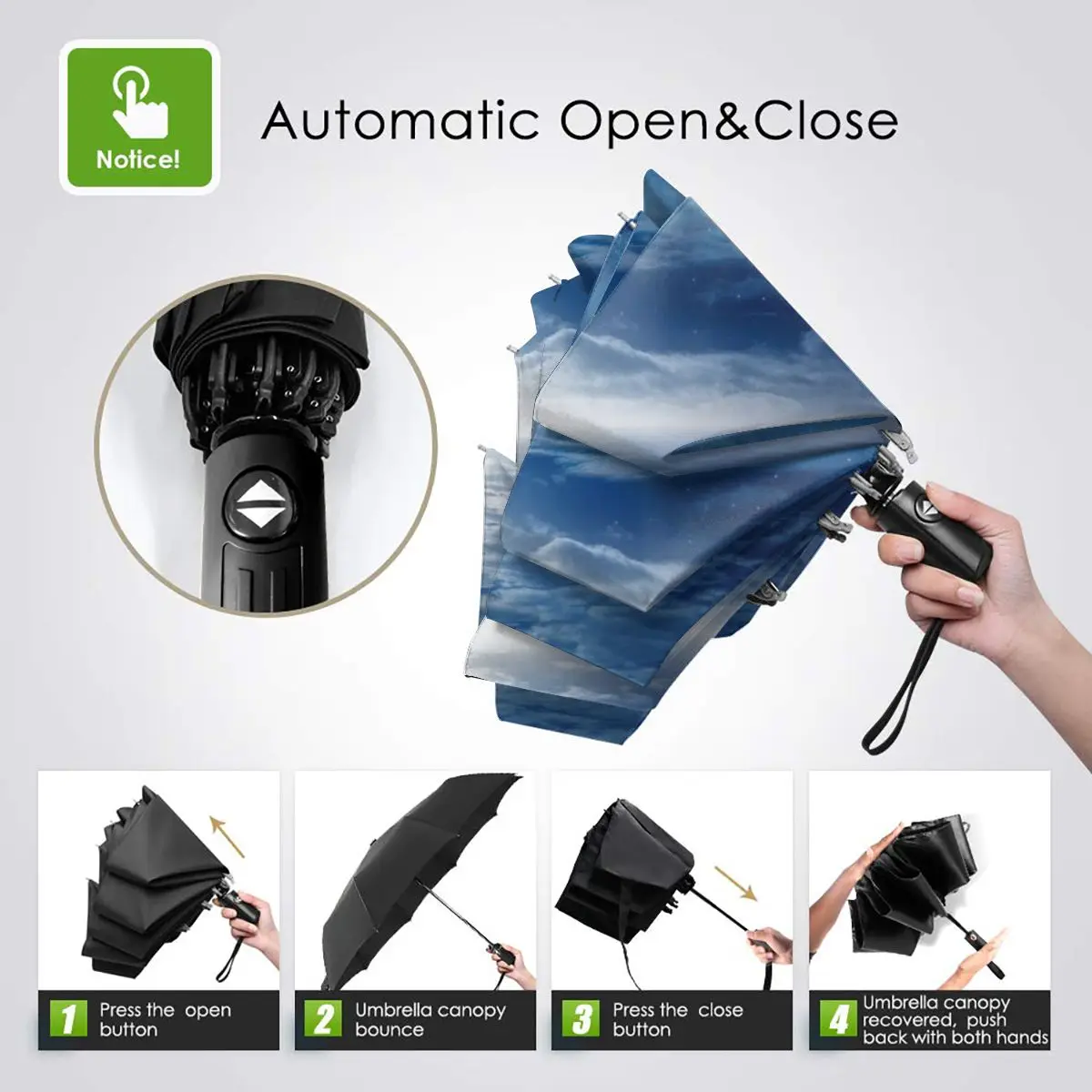 Special Offer Resistente Al Vento Pieghevoli Donne Ombrello Automatico Auto Blu Cielo Notturno Con La Luna Stelle Antivento Ombrelli Da Pioggia Per Gli Uomini Parasole Discount [NEW!!] Today!