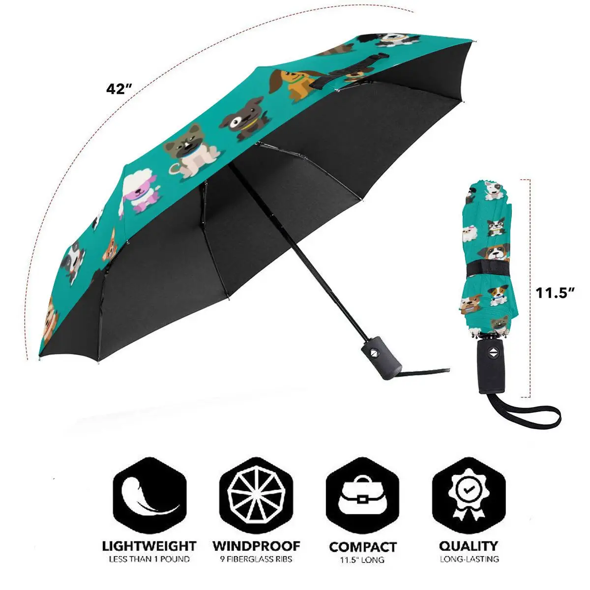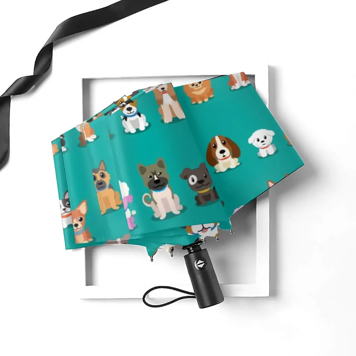Product Name: Automatico Ombrello Da Pioggia Donne Tre-pieghevole Ombrello Del Fumetto Cani Antivento Ombrello Femminile Impermeabile Parasole