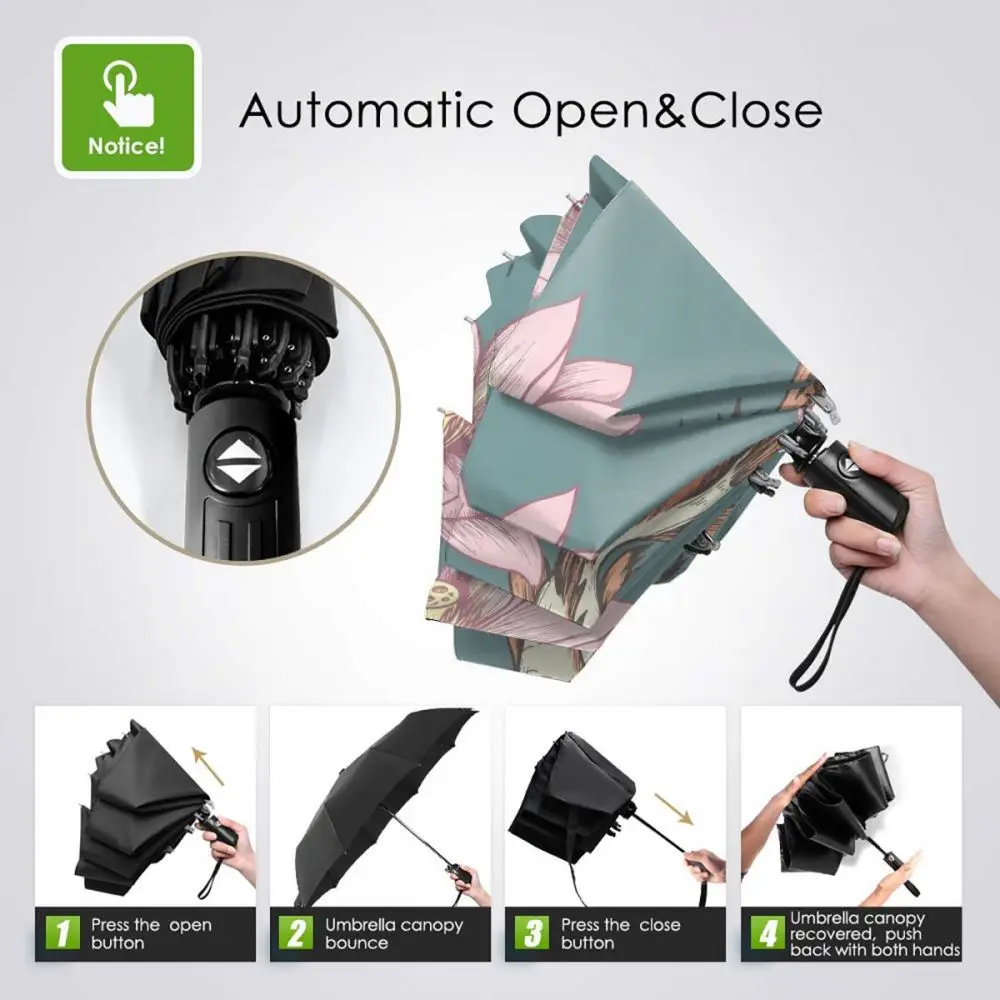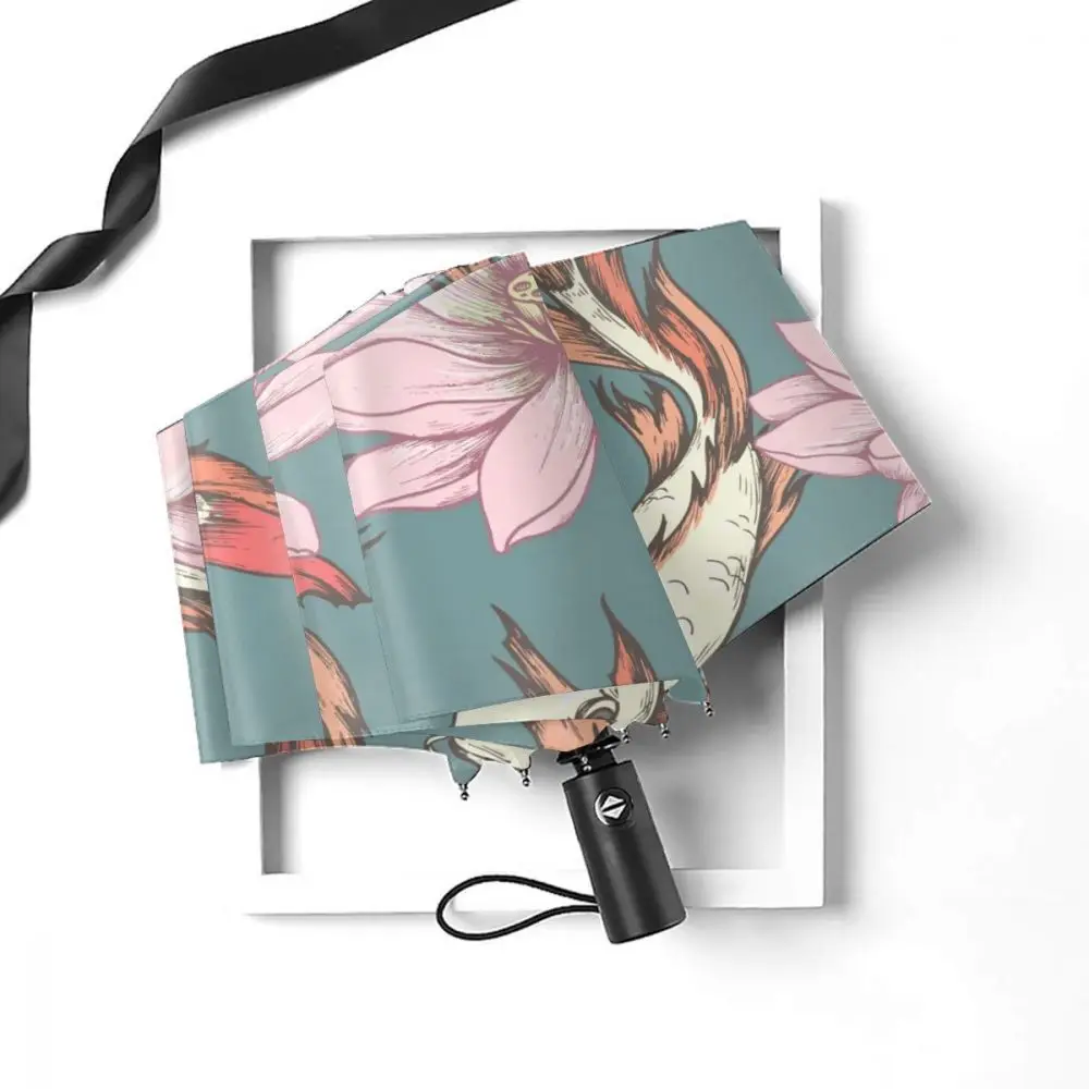 Special Offer Automatico Ombrello Pioggia Donne Three-ombrello Di Koi Carpe E Fiori Di Loto Ombrello Antivento Femminile Impermeabile Parasole Discount [NEW!!] Today!