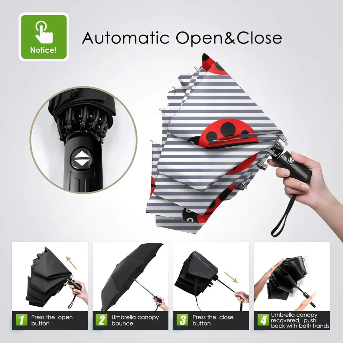 Special Offer Ombrello Soleggiato Cartone Coccinella Pieghevole Automatico Portatile Uomo Donna Ombrello Protezione Solare Pioggia Antivento Ombrellone Da Spiaggia Discount [NEW!!] Today!