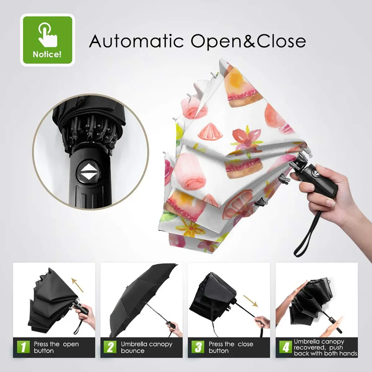 Product Name: Ombrello Soleggiato Dolci Torte Amaretti Ciambelle Pieghevole Automatico Portatile Uomo Donna Ombrello Protezione Solare Pioggia Parasole Antivento
