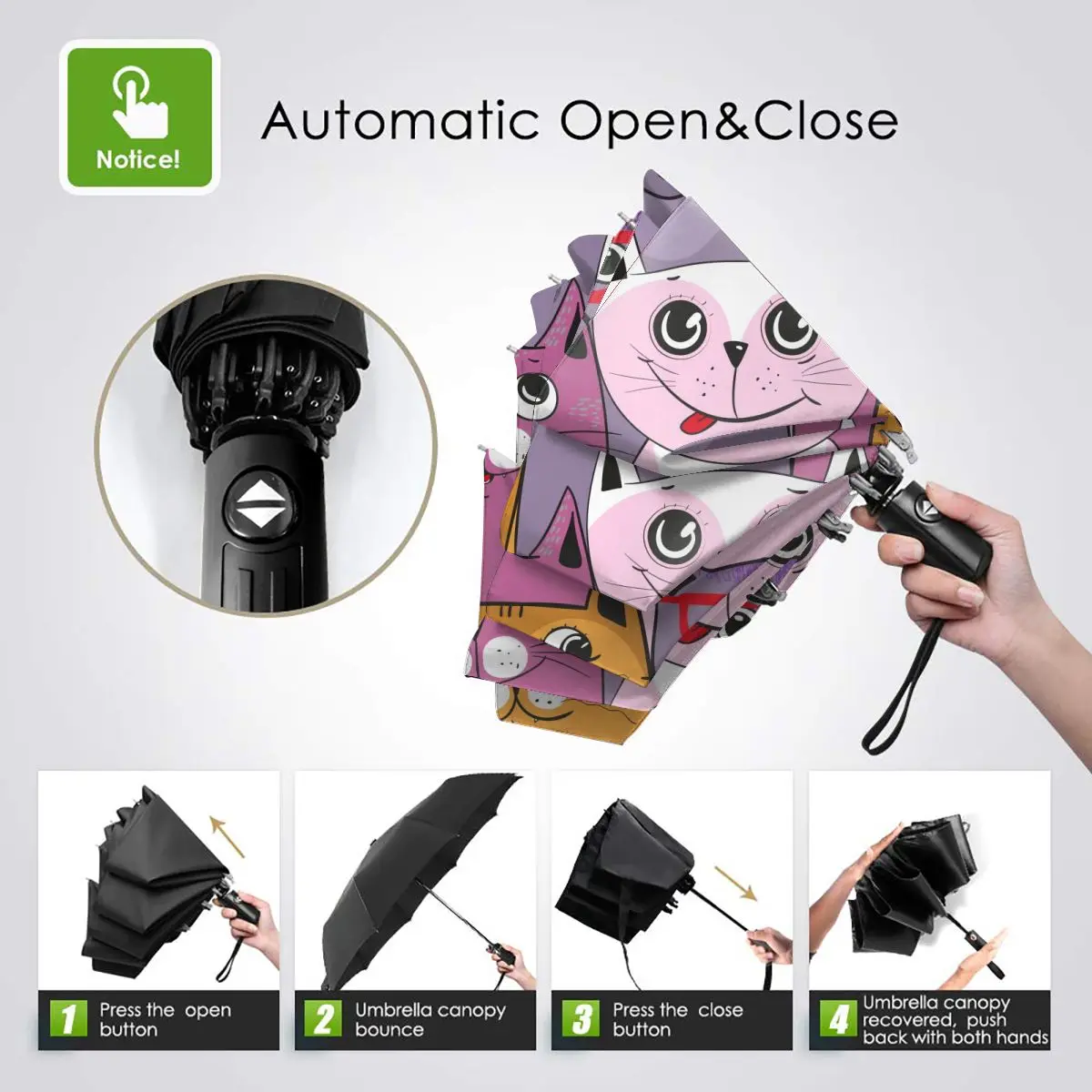 Special Offer Ombrello Automatico Pioggia Donna Ombrello A Tre Pieghe Gatti Carini Colorati Ombrello Antivento Ombrello Impermeabile Femminile Discount [NEW!!] Today!