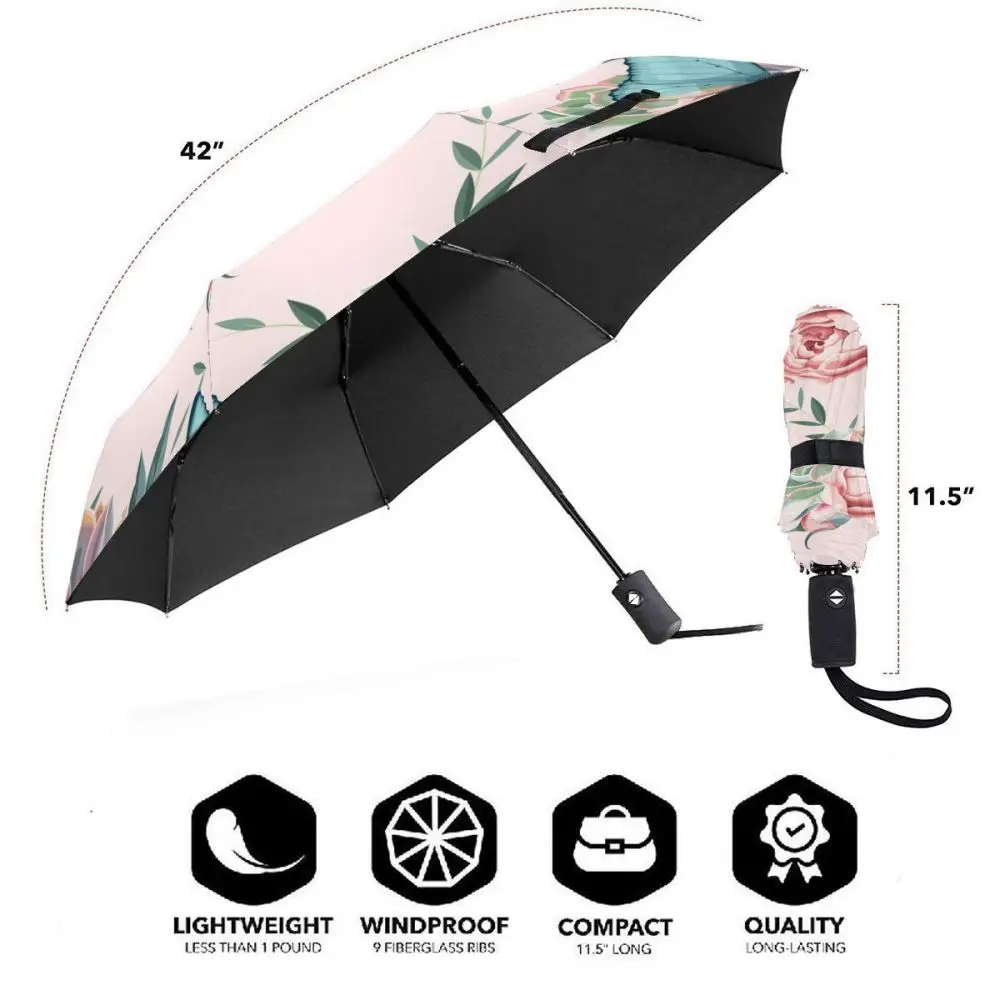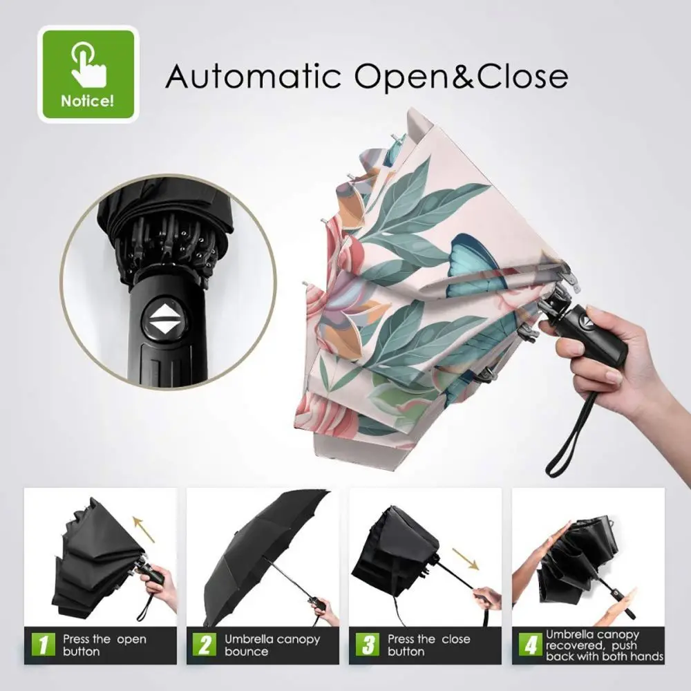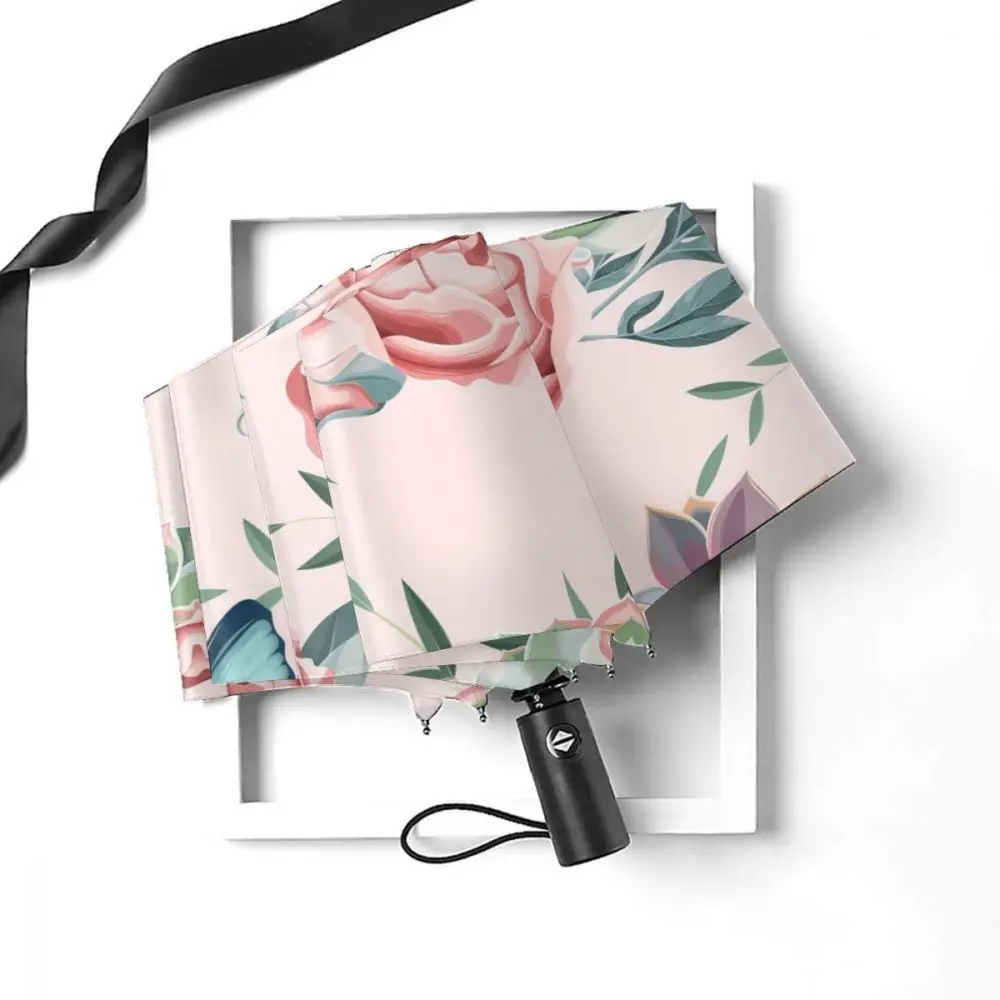 Product Name: Ombrello Automatico Pieghevole Resistente Al Vento Donna Auto Acquerello Fiore Rosa Ombrelli Antivento Pioggia Per Uomo Ombrellone