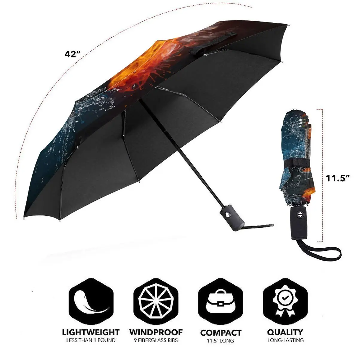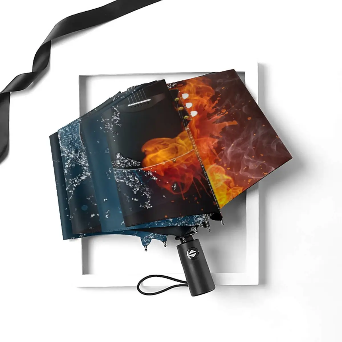 Product Name: Chitarra Elettrica Fuoco E Acqua Sfondo Antivento Pieghevole Automatico Ombrello Invertito Paraguas Portatile Per Uomo Donna