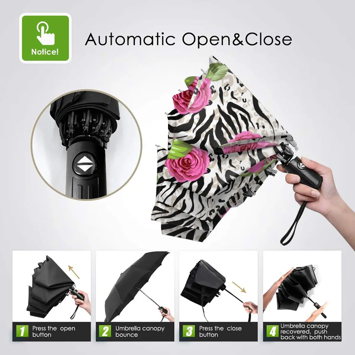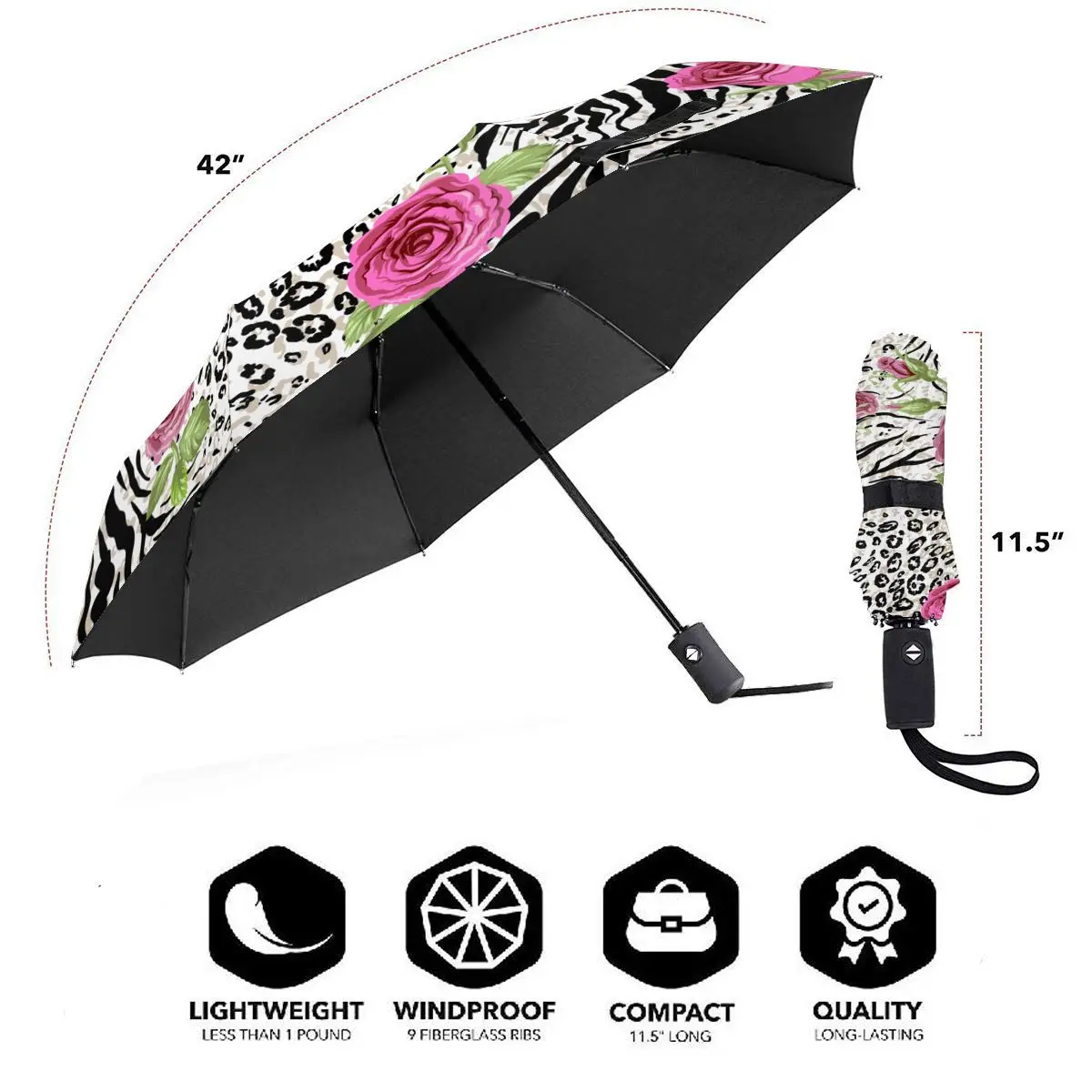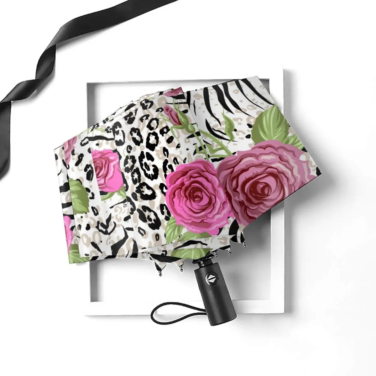 Special Offer Ombrello Soleggiato Pelle Di Animale E Rose Pieghevole Automatico Portatile Uomo Donna Ombrello Protezione Solare Pioggia Antivento Ombrellone Da Spiaggia Discount [NEW!!] Today!