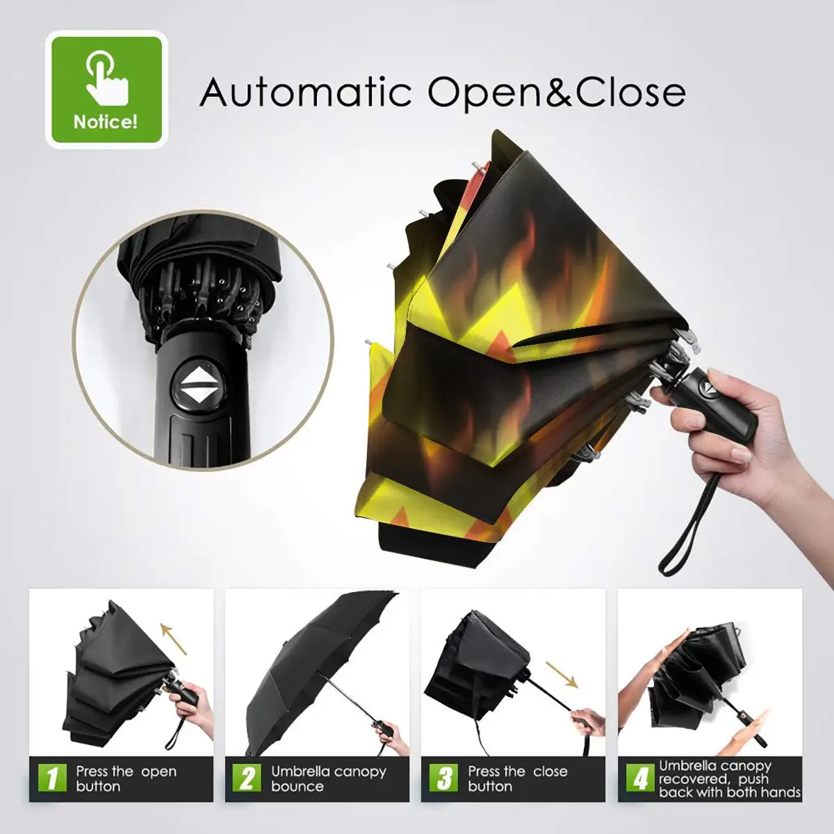 Special Offer Ombrello Soleggiato Zucca Diavolo Fuoco Faccia Pieghevole Automatico Portatile Uomo Donna Ombrello Protezione Solare Pioggia Antivento Ombrellone Da Spiaggia Discount [NEW!!] Today!