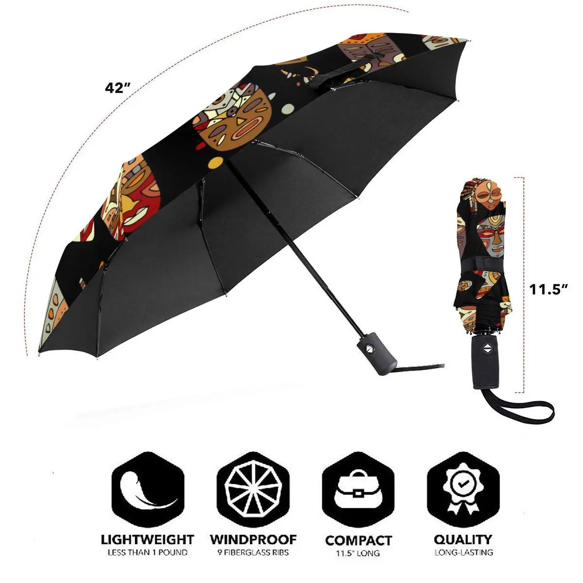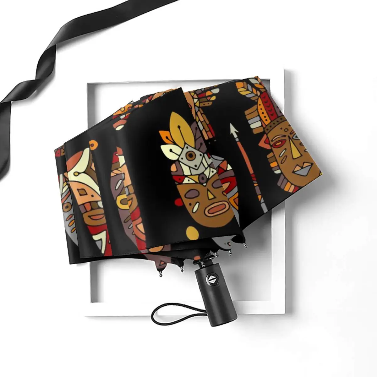 Product Name: Resistente Al Vento Pieghevoli Donne Ombrello Automatico Auto Maschera Tribale Etnico Antivento Ombrelli Da Pioggia Per Gli Uomini Parasole