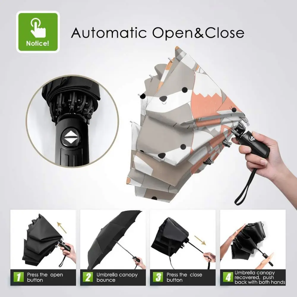 Product Name: Ombrello Automatico Pieghevole Resistente Al Vento Donna Auto Simpatico Cartone Animato Cane E Volpe Lupo Ombrelli Antivento Pioggia Per Uomo Ombrellone
