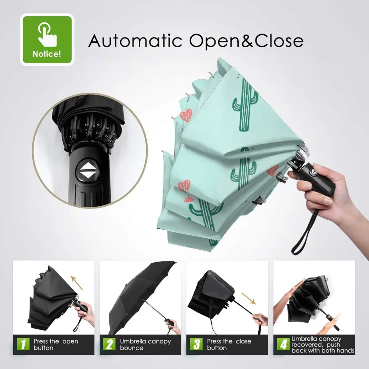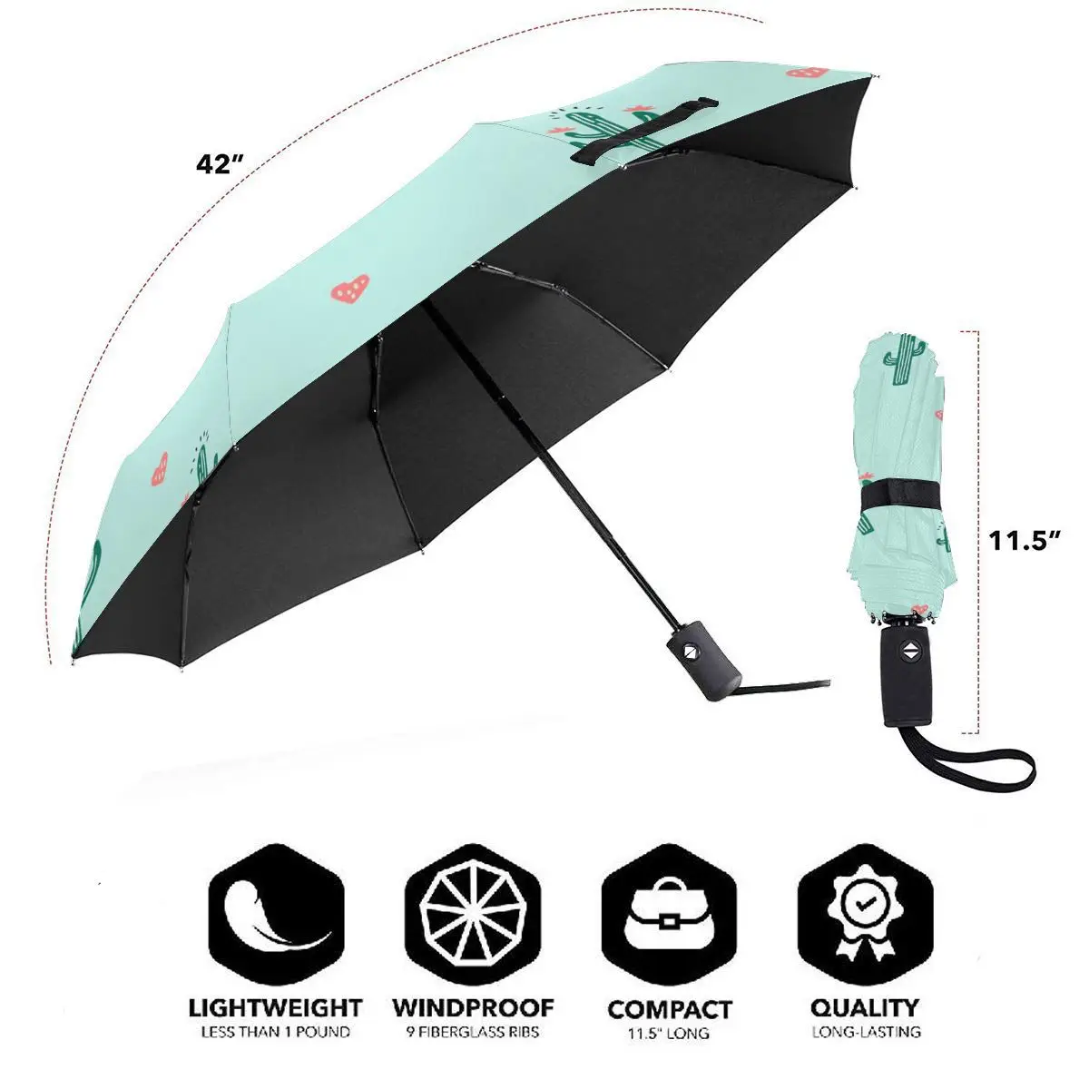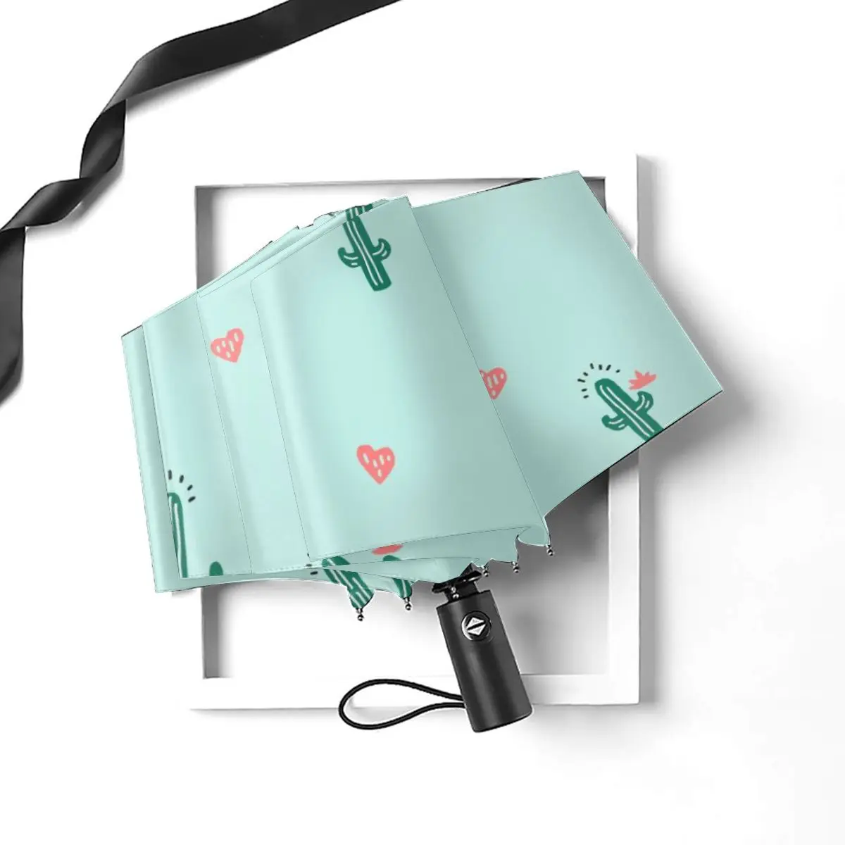 Product Name: Ombrello Di Sole Carino Cactus E Cuori Automatico Donne Degli Uomini Portatile Pieghevole Ombrello Di Protezione Solare Pioggia Antivento Spiaggia Parasole